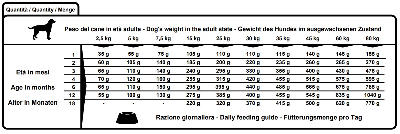 הפורמולה מותאמת לגורים מגיל 3–4 חודשים (בהתאם לגודל הגזע) ועד לסיום שלב הגדילה, ותומכת בצמיחה מאוזנת של עצמות, מפרקים ושרירים. הוספת אורז תורמת לעיכול קל ובריא, בעוד שויטמין E טבעי פועל כנוגד חמצון יעיל ומסייע בהגנה על תאי הגוף.