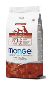 Monge Natural Superpremium All Breeds Puppy & Junior Lamb with Rice הוא מזון מלא ומאוזן לגורי כלבים מכל הגדלים, שפותח במיוחד לרווחת הגור על ידי צוות הפיתוח של Monge באיטליה. המזון מבוסס על בשר כבש איכותי כמרכיב ראשון, והוא מאופיין בטעימות גבוהה ועיכול מצוין בזכות השימוש בבשר טרי כחלק מהנוסחה.